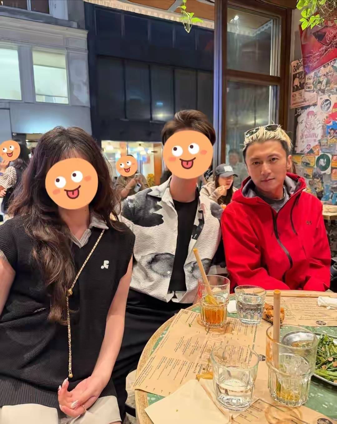 谢霆锋和朋友选择了中间的一张桌子吃饭,谢霆锋身穿一件大红色冲锋衣十分抢眼,他把头发染成了黄色十分抢眼,真的不敢相信谢霆锋已多岁了,画面中的他看起来还是像年轻时一样帅气。